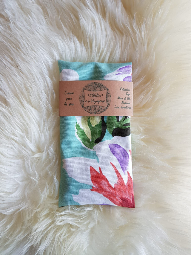 Ce petit coussin est très utile en fin de séance de yoga lors de savasana. Le léger poids permet de relâcher les muscles du visage et des paupières et permet de faire le noir plus facilement.